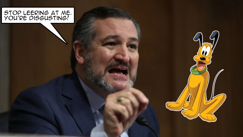 Ted Cruz, Desatanist’s demon brother responded: “Exactly! Also, I have some explicit thoughts on the physical mechanics of Mickey Mouse mating with a dog.”
