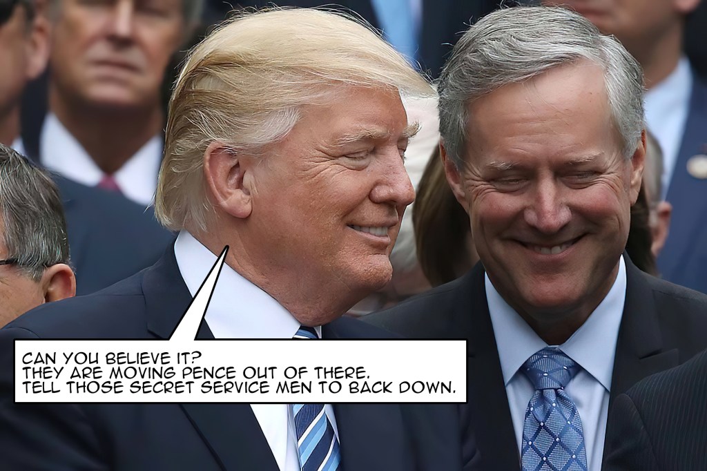 We have an ex-president who encouraged violence and according to Mark Meadows, his chief of staff, after hundreds of rioters at the Capitol started chanting “Hang Mike Pence!” told colleagues that he was complaining that the vice president was being whisked to safety. According to a report by the N.Y. Times The Don suggested that if the January 6th insurrectionists (for him patriots!) would have hung Mike Pence none of this would have happened (suggesting he would still be the president!)