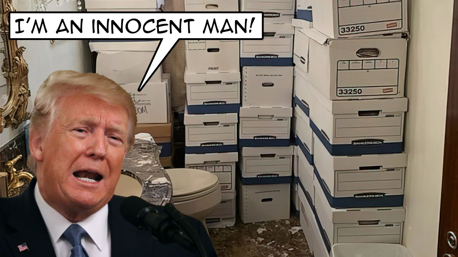 Boxes were at times in the ballroom, bathroom, and shower. There were even some special boxes referred to as “beautiful mind” boxes. The indictment also sites that in December of 2021 boxes in a storage room had fallen and spilled over the floor, including one that said “Secret” on it.