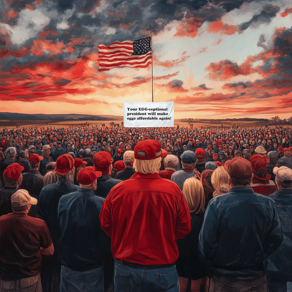 Yes, the average American was struggling to afford basic groceries, but decided that the person who has never been to a grocery store, nor ever had a thought about anything as trivial as the price of eggs, would bring their costs down. Rally around this slogan: “Three Egg Omelettes Will Be Affordable Again!”