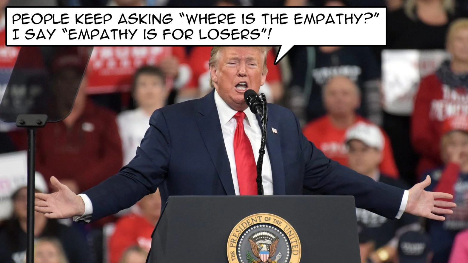 The Don’s malignant narcissism has unleashed a level of cruelty that is unprecedented in this country. His lack of empathy, ability to play on grievances and lie about everything convinces his supporters to believe and fight for him. The Don’s toxicity has given a green light to many (often white males) to connect to their dark side, justifying their hate, dehumanization, even making empathy a sign of weakness.