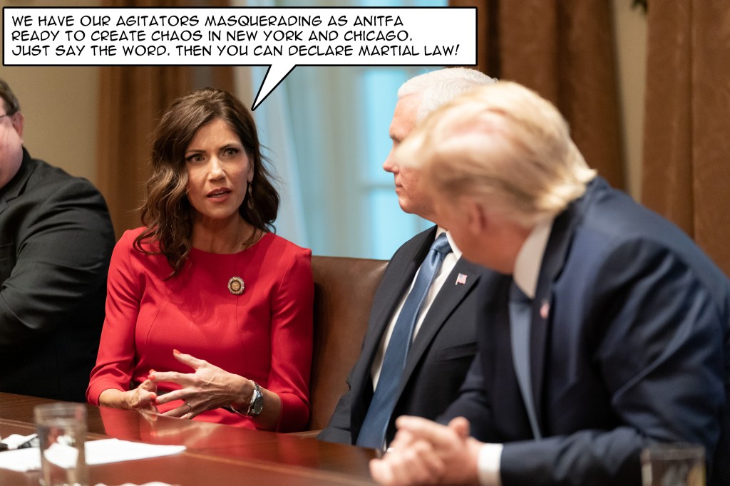 The Don: I’m calling Kristin Noem now to get your robotic ass out of here now.