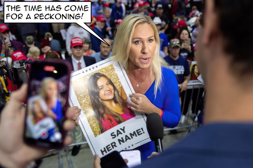 Here’s MTG: “This is a boiling point in American history.” she said. from the podium. Her outrage was pointing to the powerful men who get away with everything at the expense of the average American. She has even said he would name names of perpetrators in a congressional hearing. To that I say: Go forth Marjorie, and expose the truth of the inequities of the system and bring down the powerful men who feel like they have the freedom to do whatever they want!