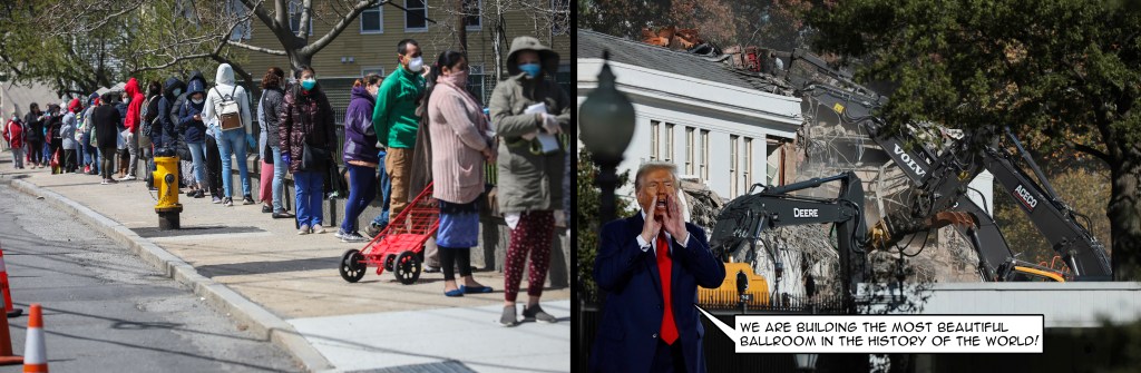 That was one big shit he dumped on us. But that’s not his first big shit. Everyday he takes a dump on something. One day it’s Mexico, another day it’s Greenland. One day it’s James Comey, another it’s Letitia James. Many days it is continuing to shit on everything related to diversity, attempting to white-wash any history that tells the truth about our country. You shit on judges by defying their rulings. You shit on congress, who you see as worthless. You shit on tens of thousands of federal workers by indiscriminately firing them for no cause. You shit on science; shit on universities through extortion. You seem to relish shitting on people’s capacity to afford healthcare by not negotiating with Democrats, almost relishing the government shutdown. You shit on poor countries who received life-saving aid from the government, resulting in thousands of deaths. You shit on Americans everywhere who are struggling to pay their bills, buy groceries, and afford housing when you start the construction of a 90,000 square foot ballroom at a cost of $200 million. How many bags of groceries would that translate into, Don? To do this, The Don literally is tearing down a part of the White House. If that’s not a metaphor for your desire to destroy our government and replace it with you as king, what is?