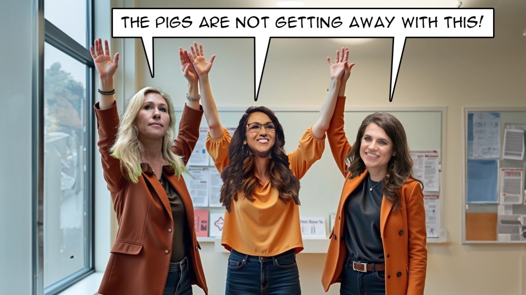 If The Don had persuaded one of the four Republicans to change their mind, none of this would have happened. The moral rot makes me want to puke. All the pressure and speaking out by the victims of Epstein would have fallen on deaf ears if it wasn’t for the three women who refused to back down in their support of the victims. The fact that these three Republican women defied The Don made his defeat that more delicious.