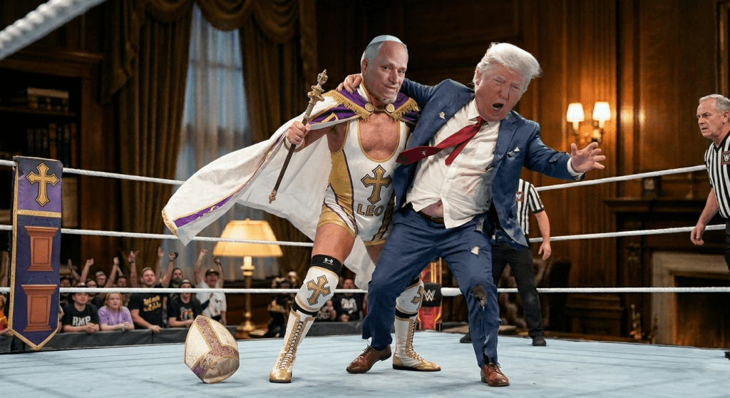 If you have been a reader of this blog, you know that I have referred to The Don as the devil or Anti-Christ on numerous occasions. I’ve mused that his capacity to convince so many religious people to follow him, despite his amorality, is just what the devil would do. The pope is just another person who needs to be brought down to size in order to elevate himself. Frankly, given the spectacle of it all, I wouldn’t be surprised in a moment of rage that The Don challenges Pope Leo to a WWF smackdown.