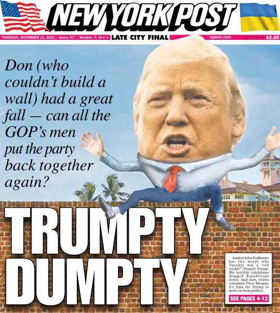The New York Post ridiculed him on the cover as “Trumpty Dumpty,” with a gratuitous shot about how he not only had a great fall, but couldn’t build a wall. Rupert, the kingmaker: have you lost your taste for the man you helped put and keep on the throne? Give me a break?