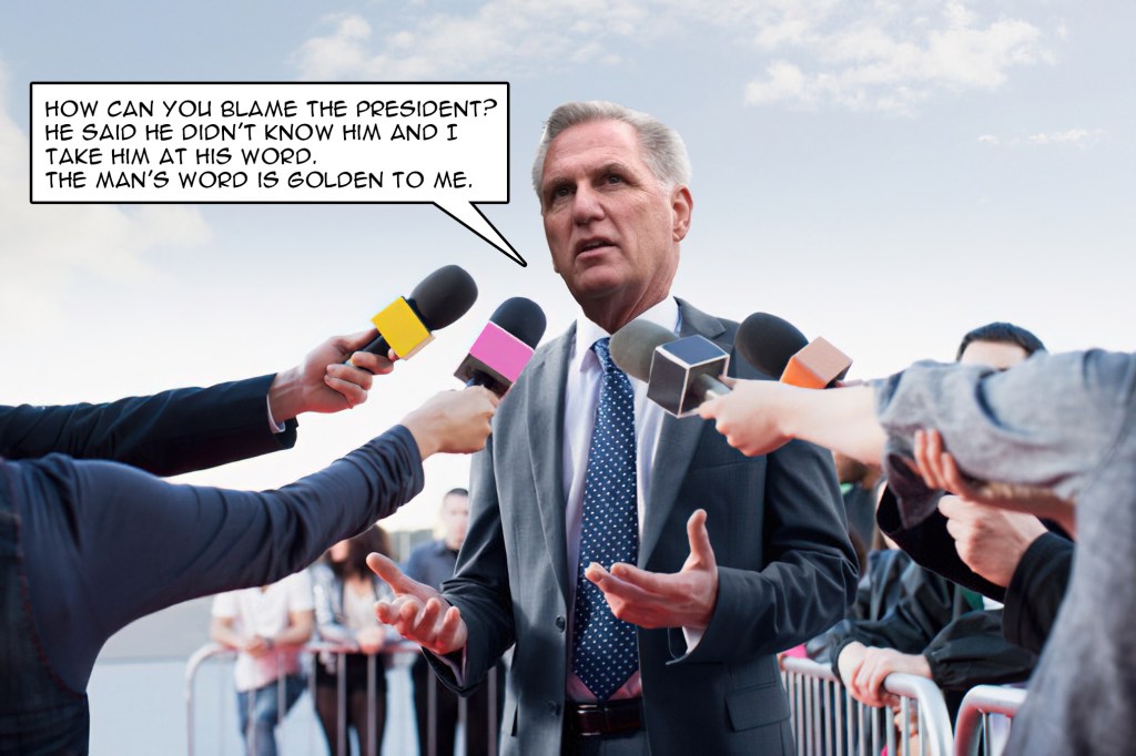 For the past two years, Kevin McCarthy had a recurring dream in which a gavel kept floating into the frame and every time he tried to grab it a woman’s hand would whisk it away. Yes, that woman was Nancy Pelosi. And you would think that now that the Republicans have secured the majority in the House, he would stop waking up in a cold sweat from the torture of it all. But the dream continues; except in this version he has the gavel in his grasp but another woman holds a gun to his head and says: “If you want to keep hold of this thing, you do as I say or else this will be the last time you will ever touch.” Yes, that woman’s name is the White Supremacist extremist Marjorie Taylor Greene. Poor Kevin, all that time praying for the power of the gavel, only to bow down to another woman! Between your sycophancy to The Don and cowering to MTG, perhaps instead of calling you Speaker of the House, we should call you “The Great Supplicant of the House,” as your fear of The Don and MTG make you nothing but a water boy dressed in a suit.
