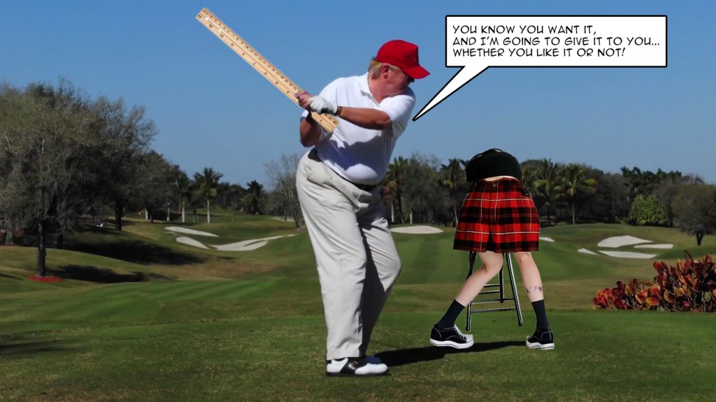 The Don: And I can’t wait for this idiotic war with Ukraine to be over as Putin told me I am finally going to get to build my Trump Tower. Not in Moscow but in Ukraine. Very cool, right? I am going to be a big part of Russia’s expansion.